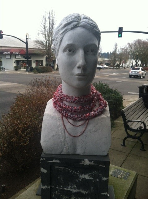 This sculpture outside of Accessories From the Heart received a little help dressing up for the holidays.