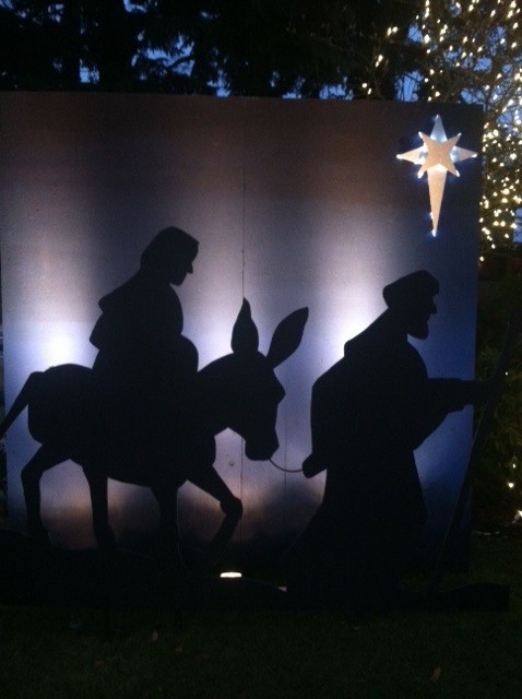 The Nativity Story greets passers-by at Our Lady of the Lake Catholic Church on A Avenue.