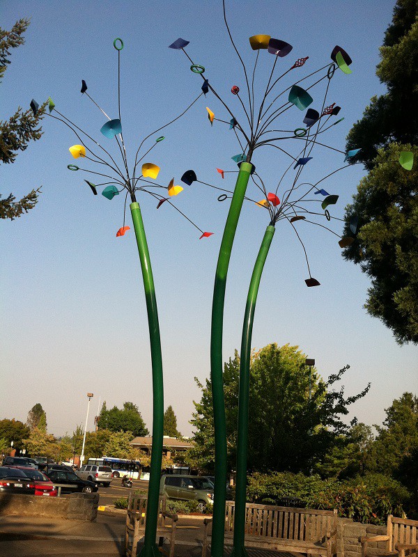 This kinetic steel sculpture, “Aspens” by Reven Marie Swanson will be at home on the corner of 5th and A Avenue for the next two years as part of Lake Oswego’s Gallery Without Walls.