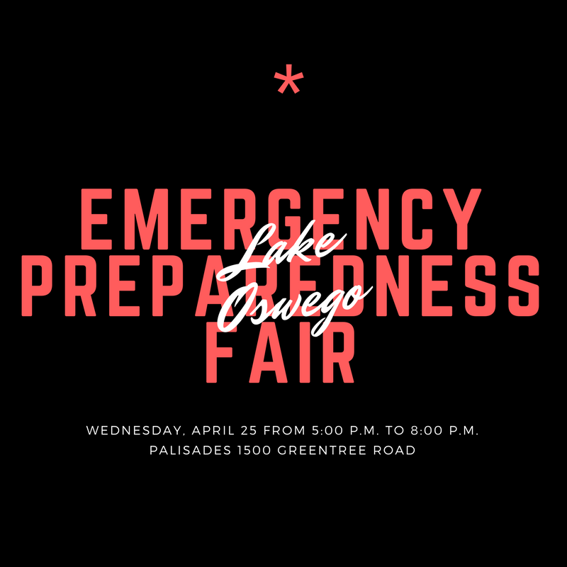 That’s one of the reasons behind the City of Lake Oswego’s Emergency Preparedness Fair on Wednesday, April 25 from 5:00 p.m. to 8:00 p.m. on the Palisades campus at 1500 Greentree Road.