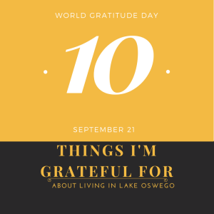 In the spirit of World Gratitude Day this Thursday, I’m listing 10 things about living in Lake Oswego that I’m grateful for. The title of my blog is 52 Reasons to Love Lake Oswego so of course there are many more than 10 as I have been writing this blog for over seven years, but right now these are my top 10.
