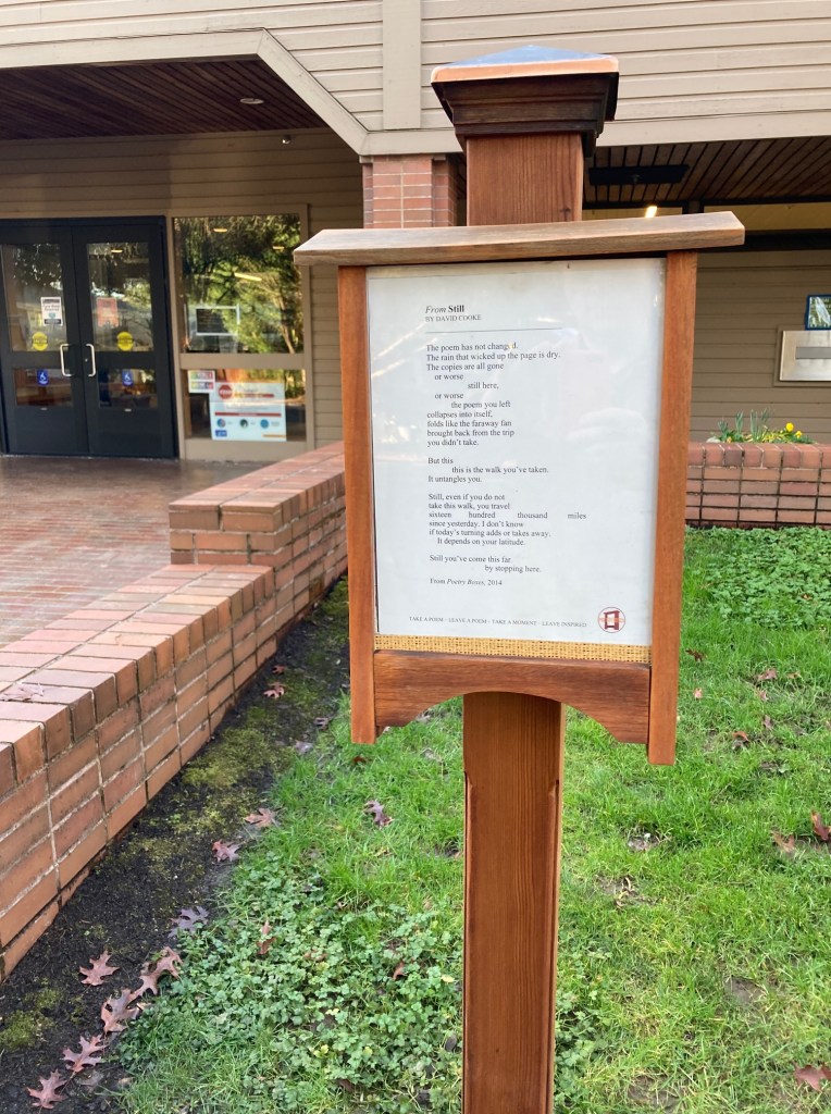 And, for those of you who walk the neighborhoods of Lake Oswego, you’ve probably encountered a poetry box or two where residents encourage us to take a moment to think about the world and our place in it in a different way.