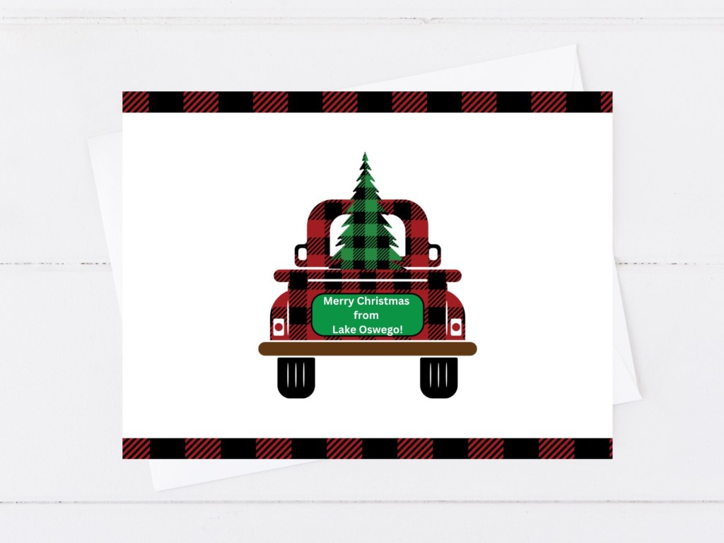 So, put some Lake Oswego spirit in your holiday greetings with one of these festive cards. Here’s a sneak peek but they’re available now online. And there’s a good chance you can also pick them up already printed at the Oswego Heritage Council Annual Holiday Marketplace on December 7 from 12:30 p.m. to 6:00 p.m. at 398 Tenth Street.